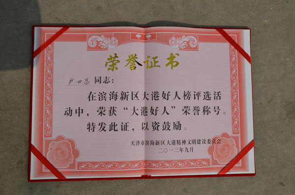 近日,我公司司機尹世昌被天津市濱海新區大港精神文明建設委員會授予"大港好人"榮譽稱號,《濱海時報》、《天津文明網》、《北方網》等媒體都對他馬路救大娘,智"擒"肇事者的事跡進行了報道;濱海新區文明辦已經將他的事跡上報市文明辦,表彰他見義勇為、見義"智"為的精神。 2012年9月,一天傍晚尹世昌駕車從塘沽返回大港經過官港小區,他看到前面有一輛車開得很快,到小區門口時突然聽到"砰"的一聲,他覺得不好,肯定是撞人了!他第一反映就是把車開到那輛車前面并橫在了路中央,防止肇事者逃跑。肇事者見有人發現了,便假意打電話報警,然后又突然起步,把車開進小區。 尹世昌這時看到路面上,躺著一位60歲左右的大娘。他俯下身尋問大娘感覺怎么樣?大娘說沒事,身上感覺不到疼,還說剛才撞她的人好像認識,就不跟他計較了。尹世昌對大娘說,這可能是暫時麻木,一定要去醫院檢查。然后,他果斷報了警,并幫助打電話通知了大娘的家屬。當大娘的老伴趕來時,也有路人紛紛圍上來,目睹了這一切。尹世昌這時看見肇事車輛(擋風玻璃已撞碎,很好認出!)悄悄又從小區開出,試圖逃跑,于是他記下了肇事車的牌照號!然后和大娘家人一起把老人送往醫院救治。